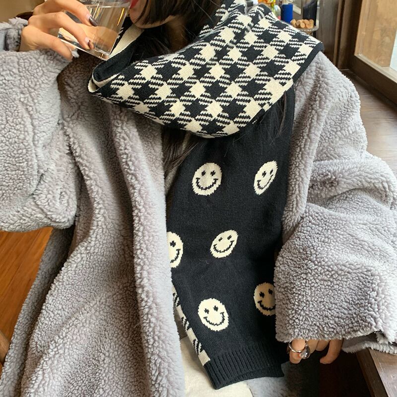 ニット格子柄スカーフ オータムウィンター 秋物 冬物 ブラック・アイド・ピーズ48802396663