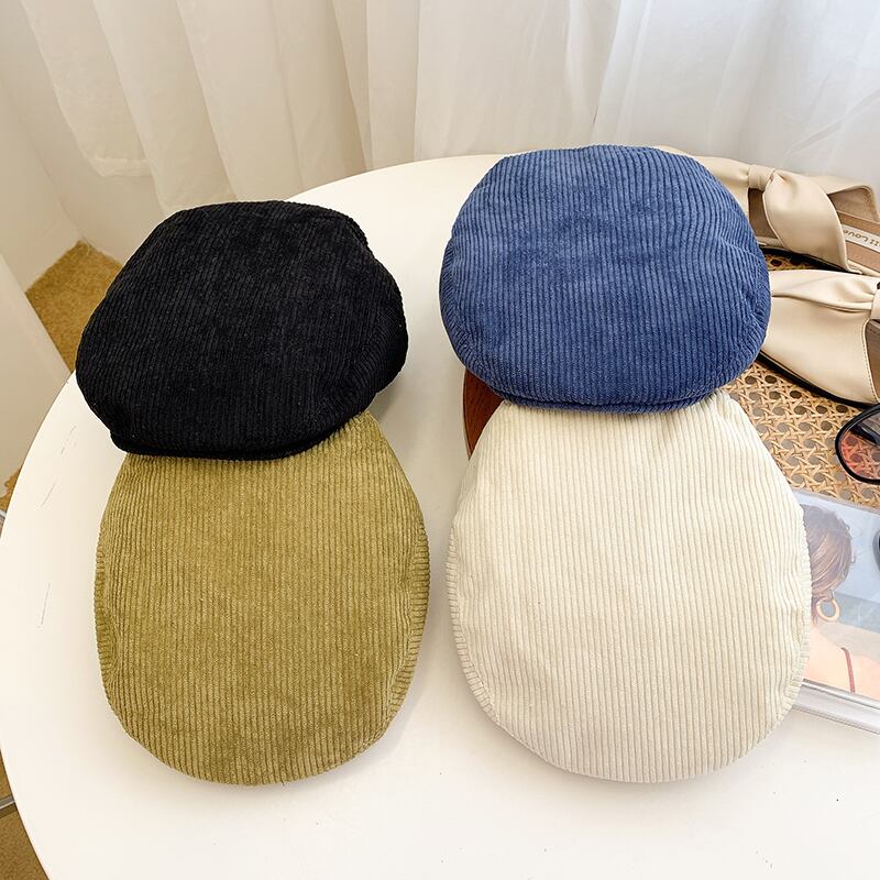 コーデュロイオータムウィンタースタンダードキャップ レトロ 帽子 秋物 冬物 ベレット ヘアアクセサリー ブラック・アイド・ピーズ28973015047