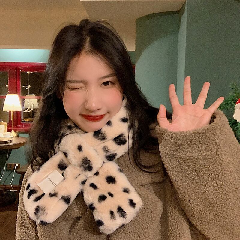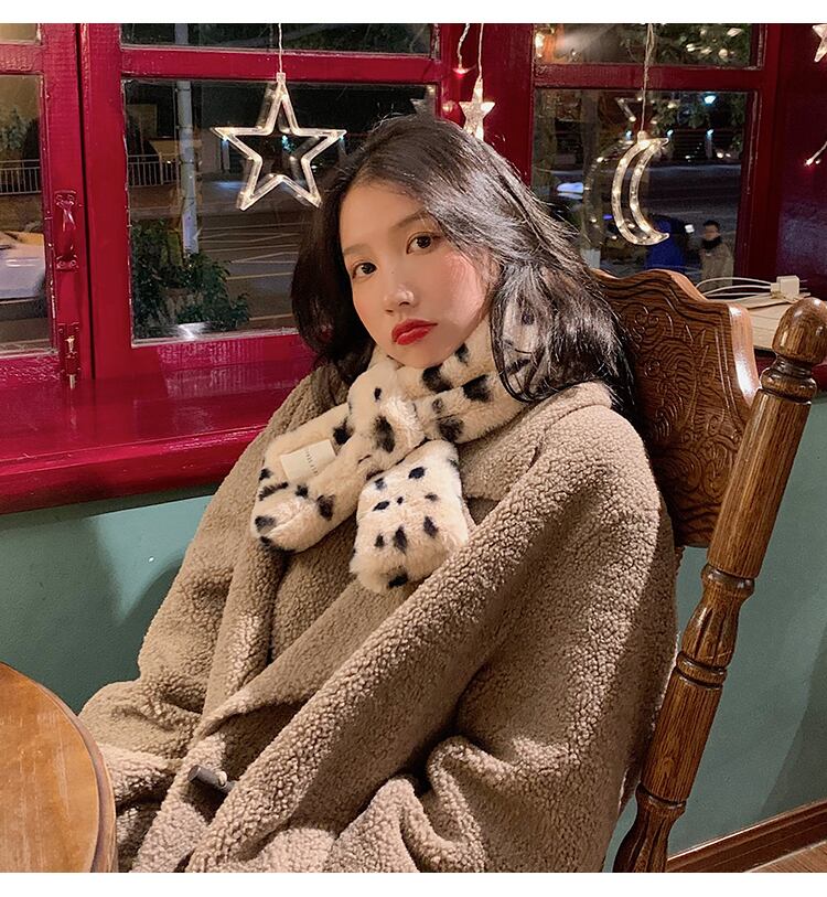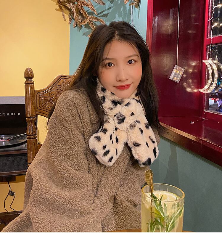 スカーフ オータムウィンターレオパードプリント柄ファーカラー 大人ガーリー スウィート キュート カジュアル 秋物 冬物 ブラック・アイド・ピーズ23020623420