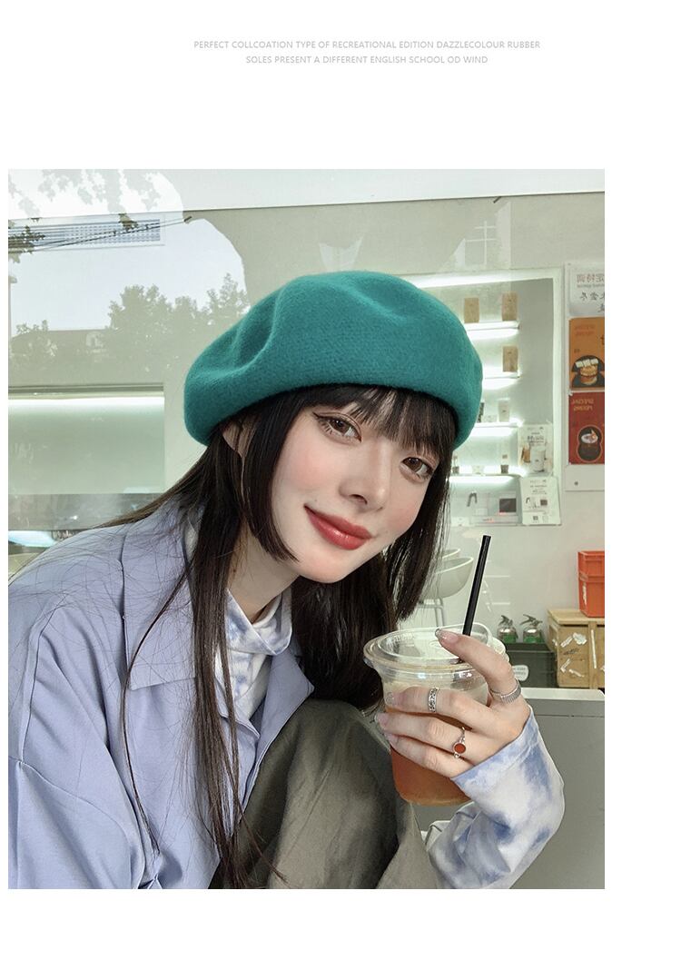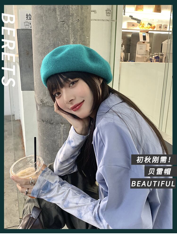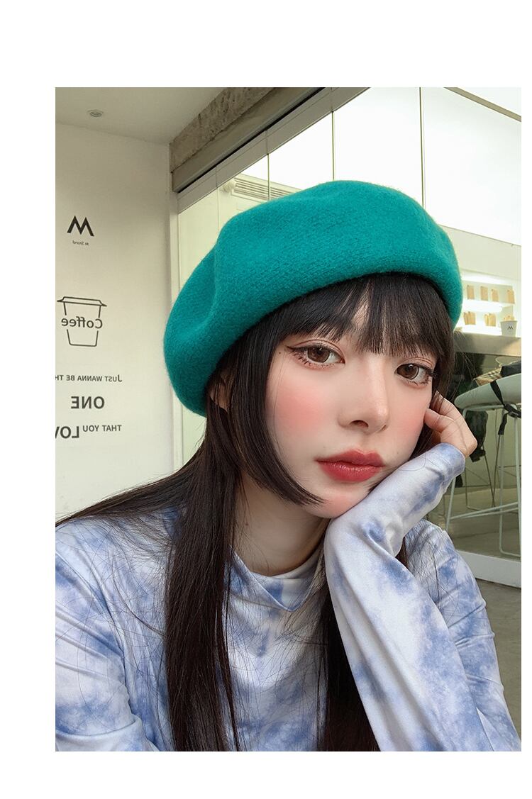 スタンダードオータムウィンターニットウールブルー レトロ 帽子 秋物 冬物 ベレット ヘアアクセサリー ブラック・アイド・ピーズ22891658714