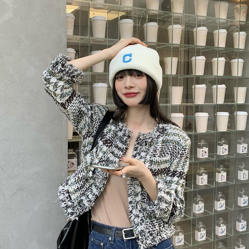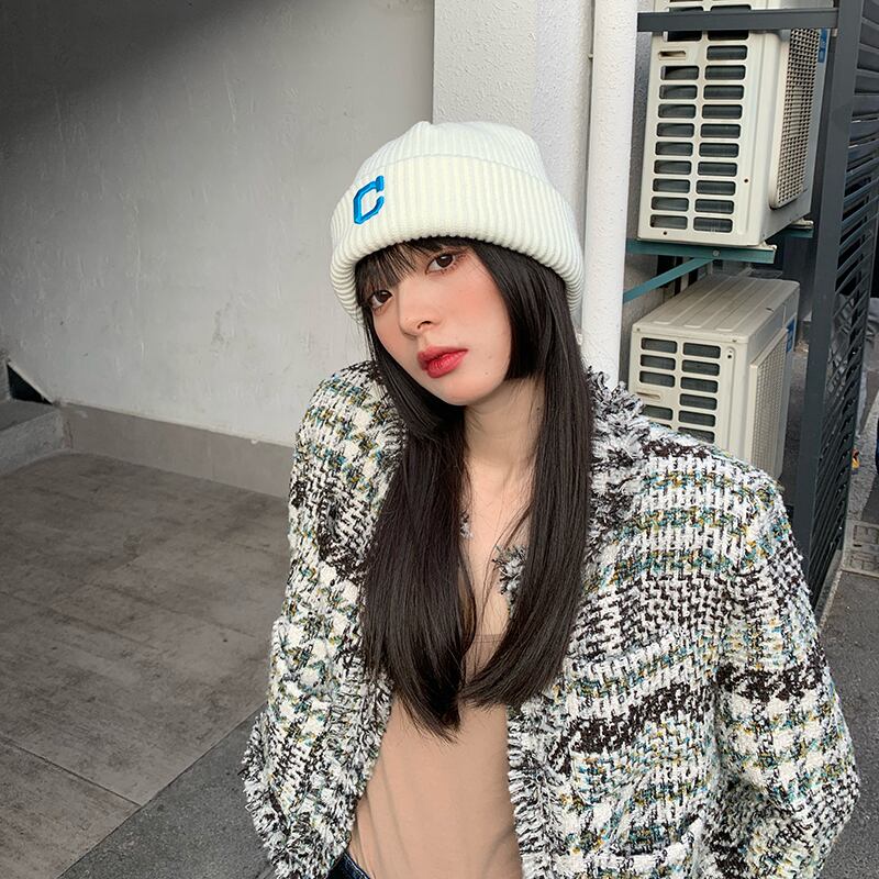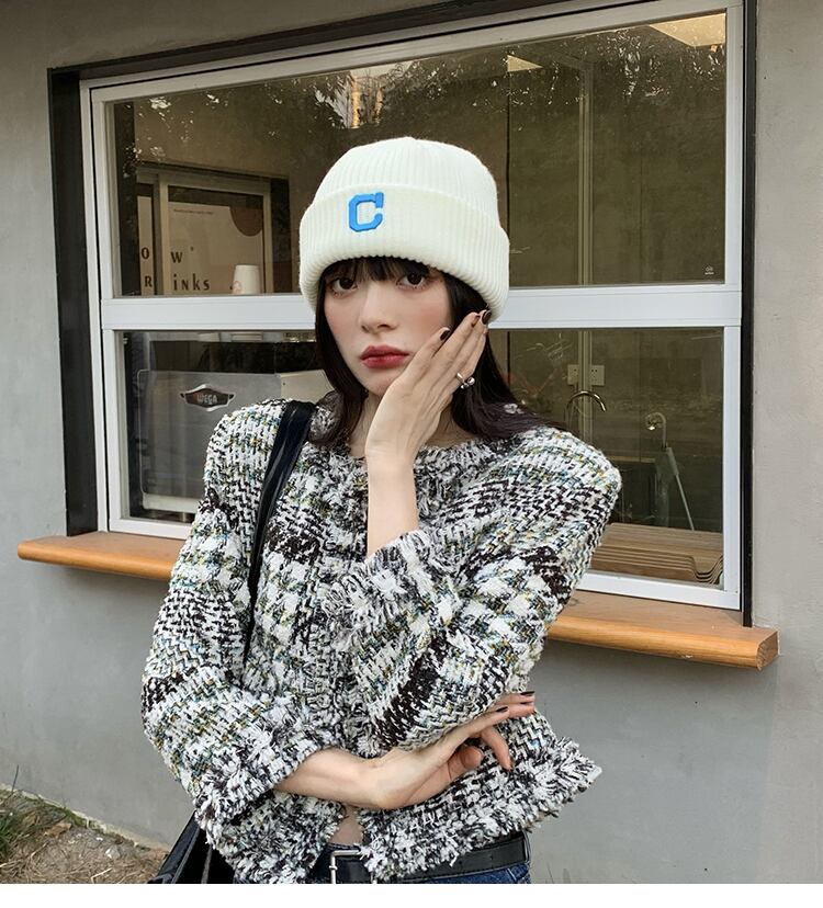オータムウィンター刺繍ホワイトニット 帽子 秋物 冬物 ブラック・アイド・ピーズ83365353344