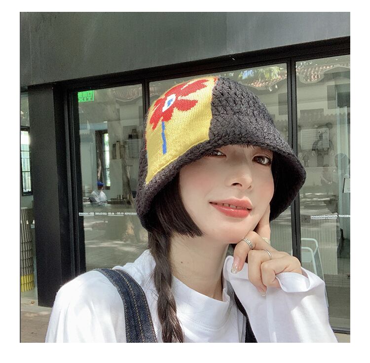 ニットオータムウィンターブラックFlowerデザイン ウール 帽子 秋物 冬物 フラワーデザイン ブラック・アイド・ピーズ95528138307