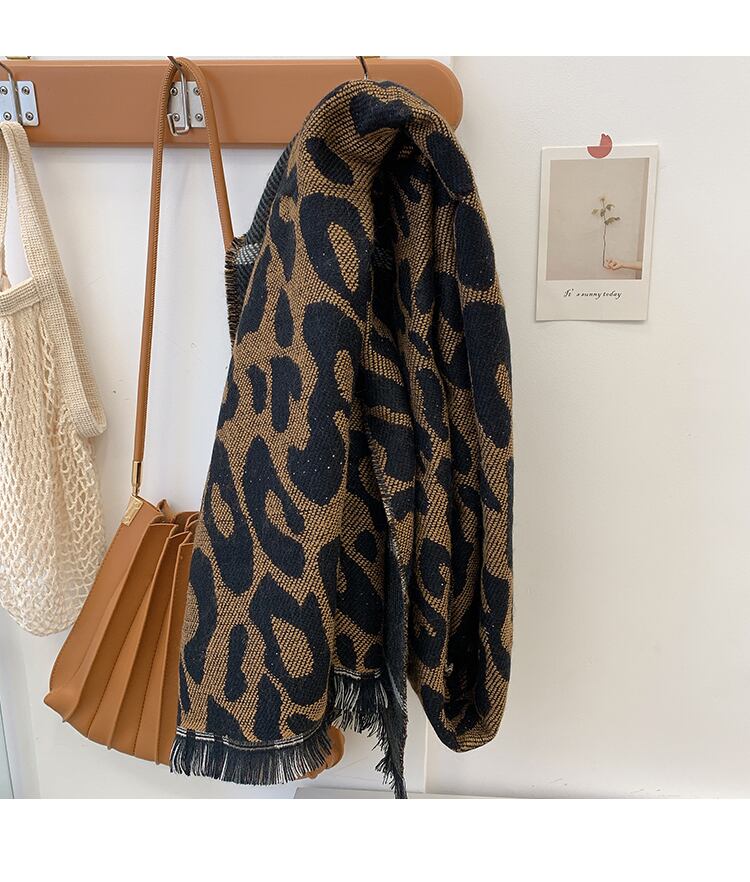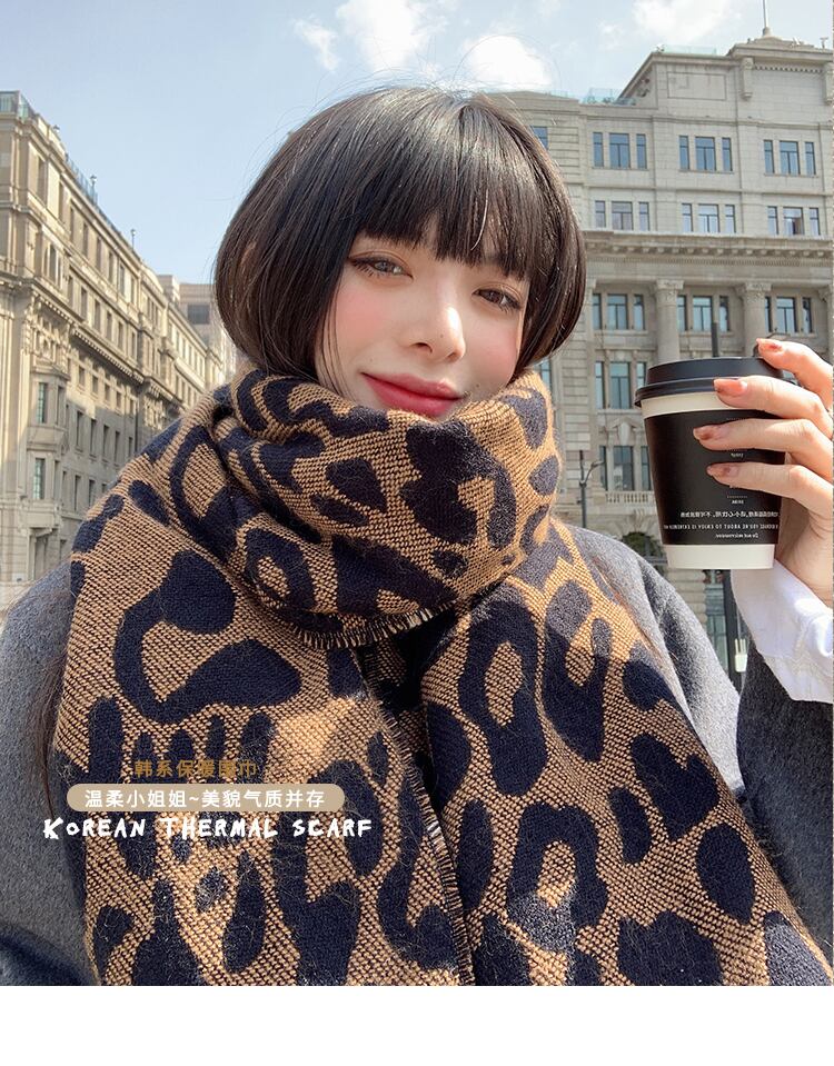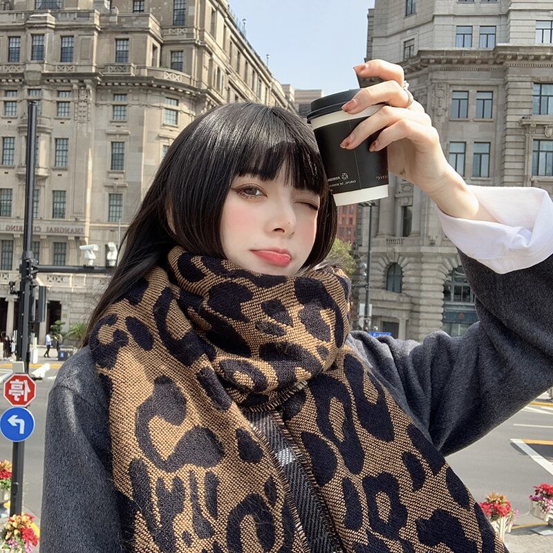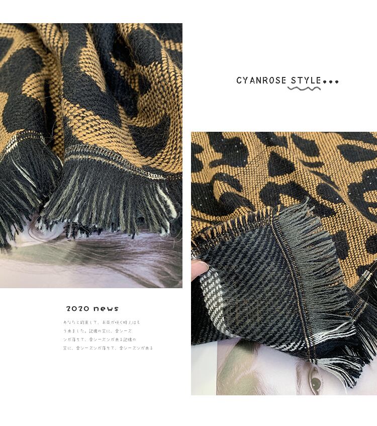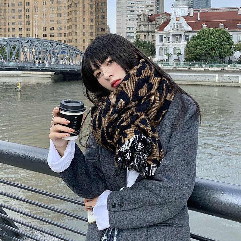 スカーフ ウィンターレオパード格子柄ロング 冬物 ブラック・アイド・ピーズ95829243432
