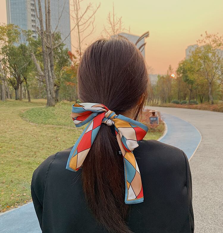 オータムウィンタースタンダードスカーフ アクセサリー ヘアバンド レトロ 秋物 冬物 ヘアアクセサリー シルク ブラック・アイド・ピーズ70982976340