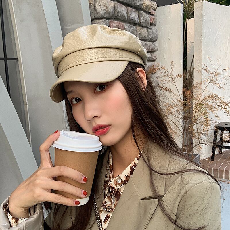 オータムウィンタースタンダードネイビーレザー レトロ 帽子 秋物 冬物 ベレット ヘアアクセサリー ブラック・アイド・ピーズ44187649544