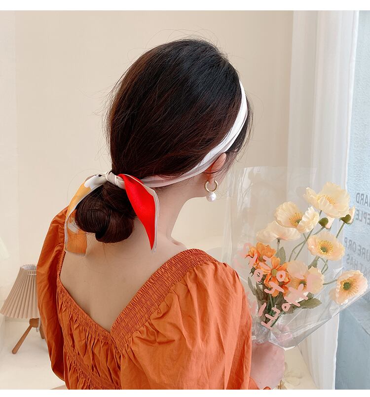 スカーフ ヘアバンド レッドFlowerデザイン リング アクセサリー ヘアアクセサリー シルク 指輪 フラワーデザイン ブラック・アイド・ピーズ42633719866