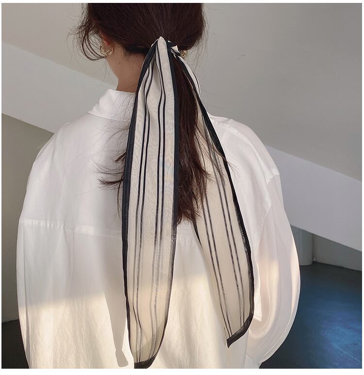 薄手ストライプ リボン アクセサリー シルク ブラック・アイド・ピーズ41571222029