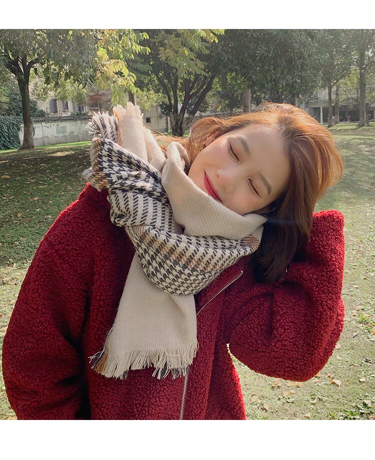 スカーフ ウィンター格子柄ロング 冬物 ステッチ ブラック・アイド・ピーズ88833565912