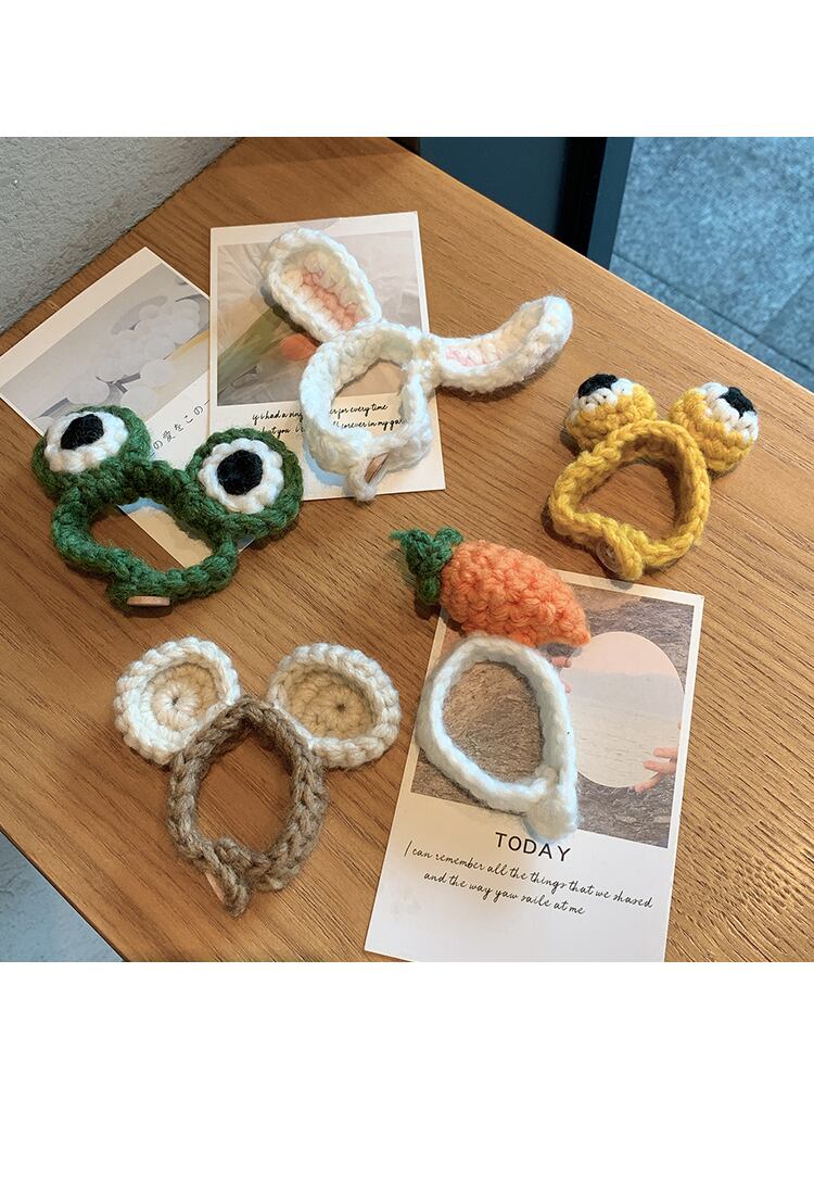 色:緑のカエル,にんじん,コーヒーベア,うさぎの耳,黄色い目,ピンクの豚