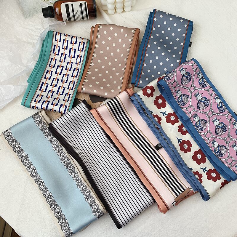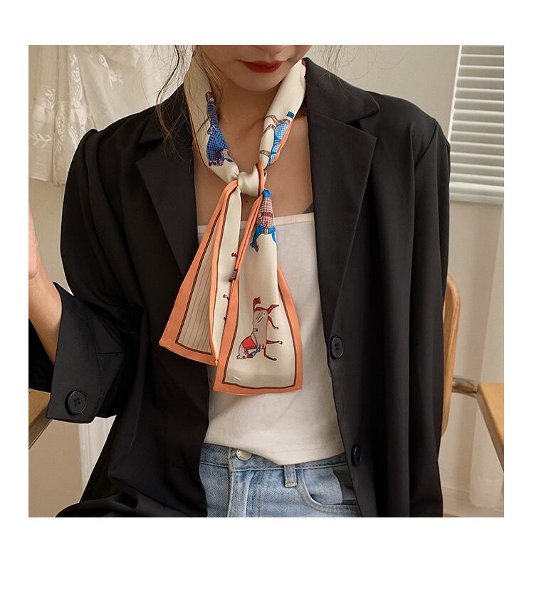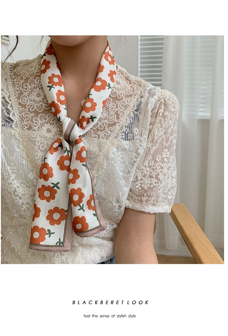 スカーフ オータム薄手ロングストライプレッドヘアバンド 秋物 ヘアアクセサリー シルク スクウェア ブラック・アイド・ピーズ6858774313