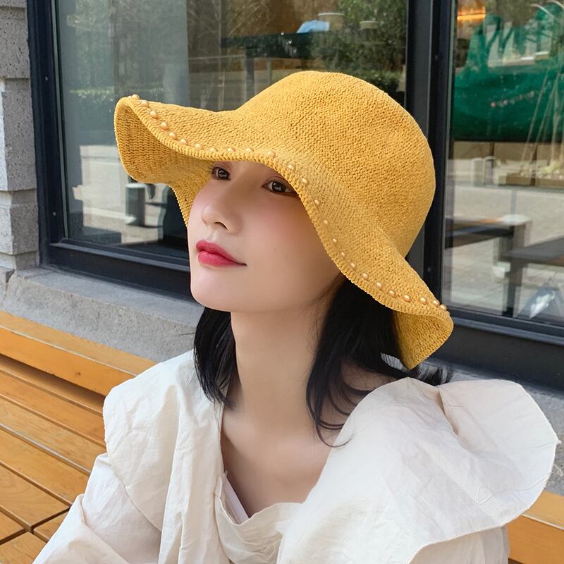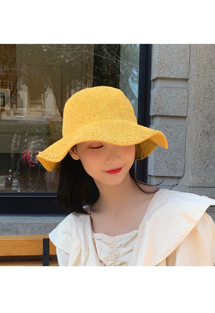サマーニットパールイエロー 帽子 夏物 真珠 ブラック・アイド・ピーズ95655632557