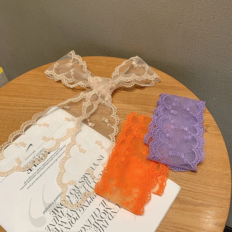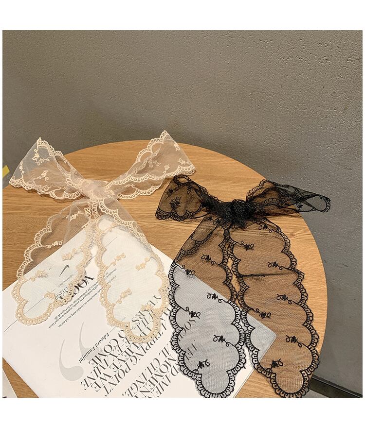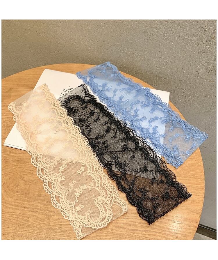 レースリボンスカーフ ヘアバンド サマー薄手スタンダード レトロ 夏物 ヘアアクセサリー シルク ブラック・アイド・ピーズ1702548623