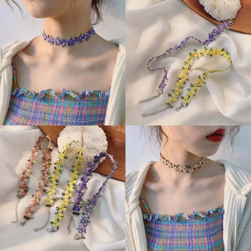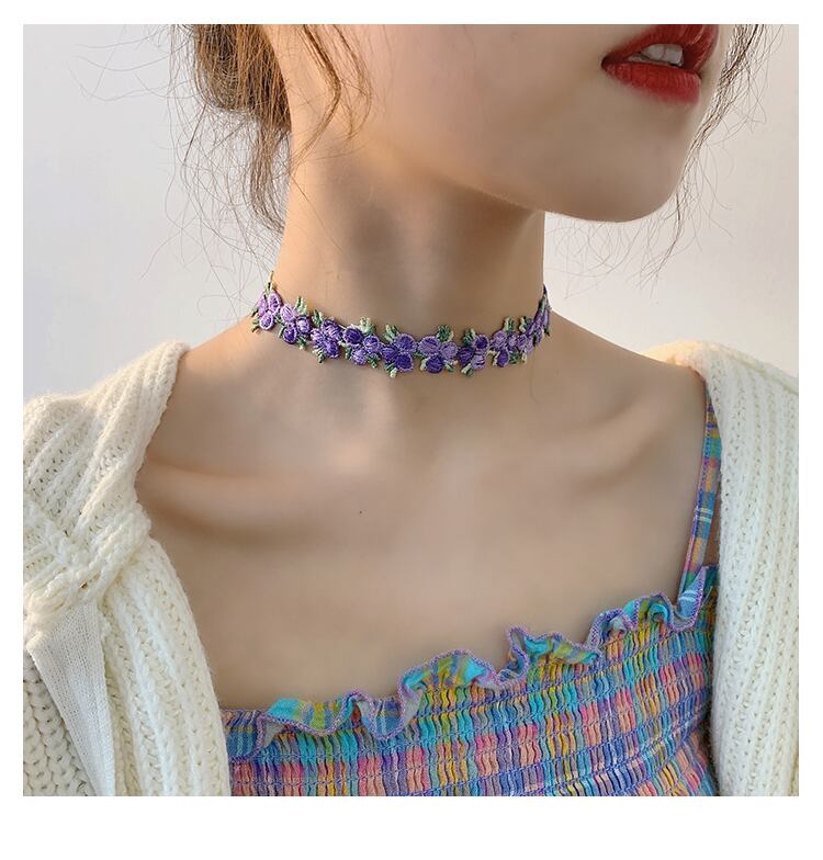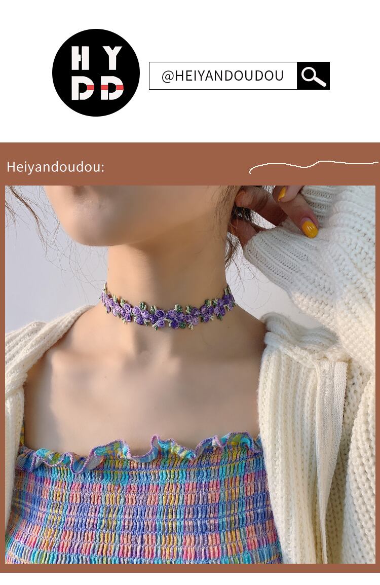 ネックレス Flowerデザイン 刺繍スタンダードハートカラーアクセサリー レトロ レース チョーカー フラワーデザイン パープル ブラック・アイド・ピーズ74799297778
