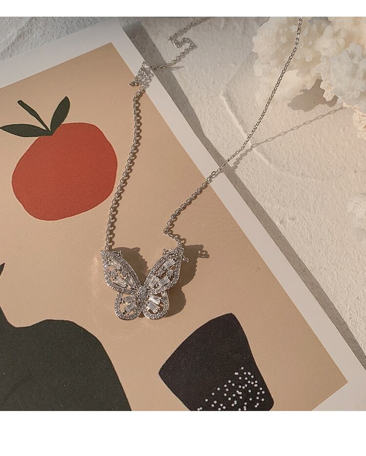 Butterflyデザイン ネックレス レッドスタンダードチェーン レトロ レース ペンダント ブラック・アイド・ピーズ38248600504