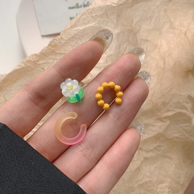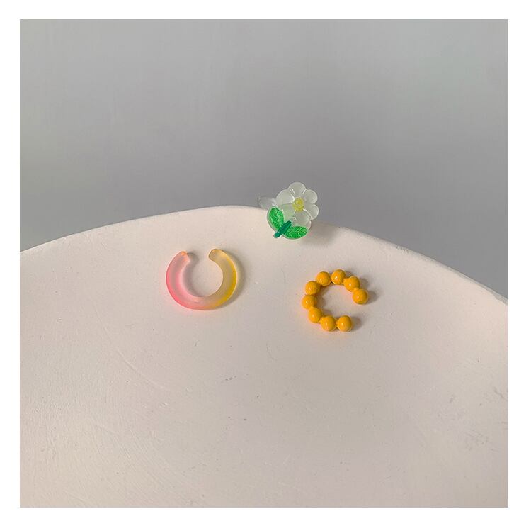 カラーFlowerデザイン スタンダードイヤリング レトロ 指輪 フラワーデザイン ブラック・アイド・ピーズ12047622336