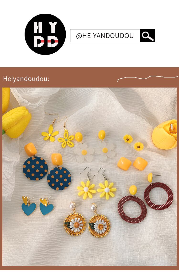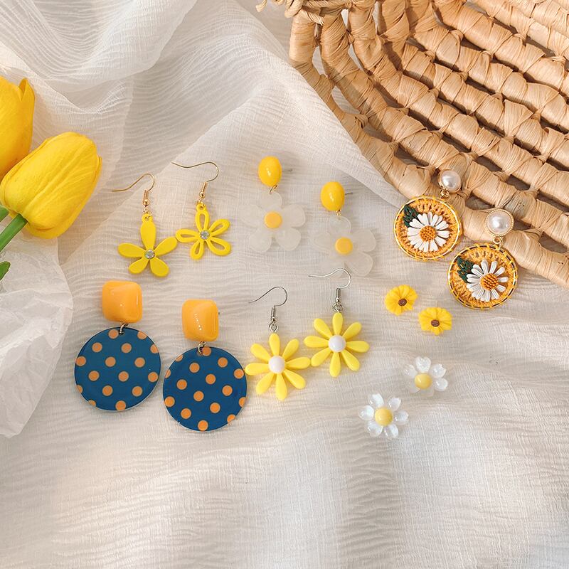色:黄色と白の花,非対称中空セクション,赤い波のポイント,ブルーウェーブポイント,長いデイジー,樹脂透明花,フラワーイヤーフック,小さな花,織り花,愛のコントラスト