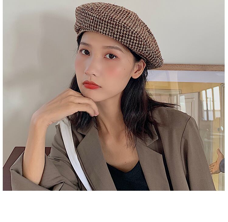 スタイル格子柄カジュアルオータムウィンター 帽子 秋物 冬物 ベレット ヘアアクセサリー ブラック・アイド・ピーズ40848609631