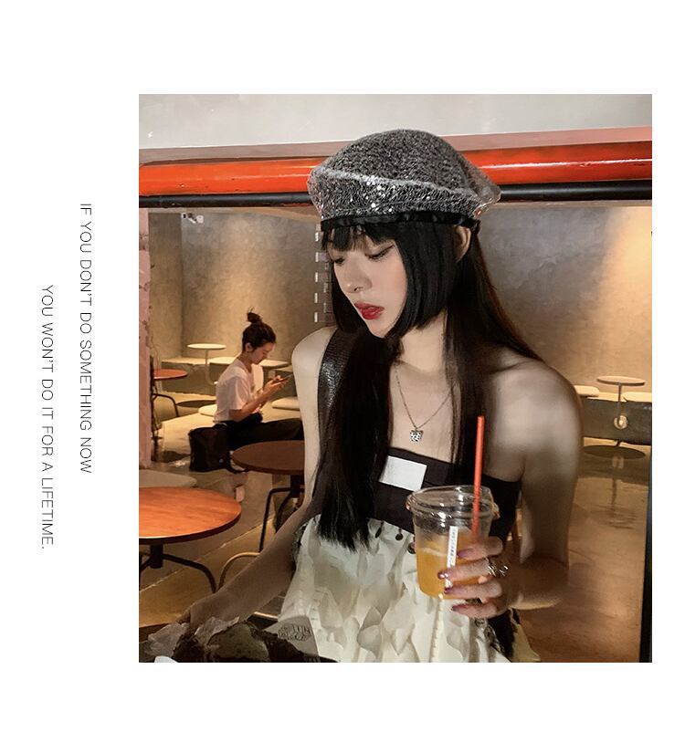 サマー薄手メッシュスタンダード レトロ 帽子 夏物 ベレット ヘアアクセサリー ブラック・アイド・ピーズ15430836423