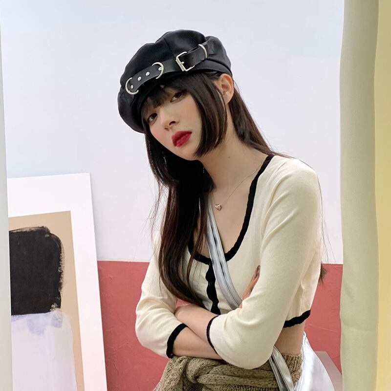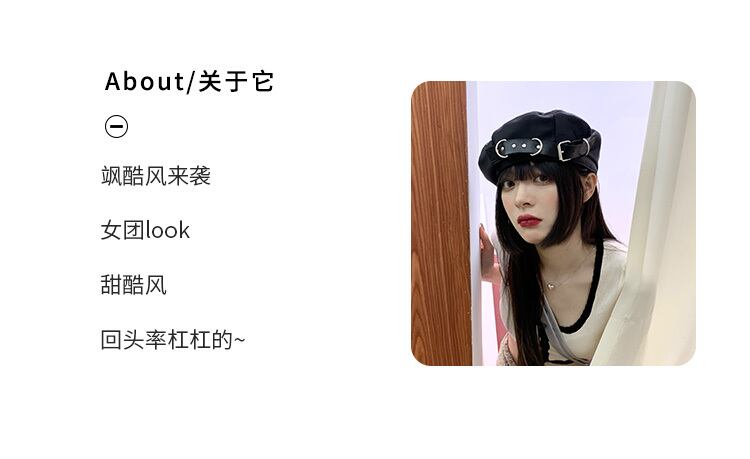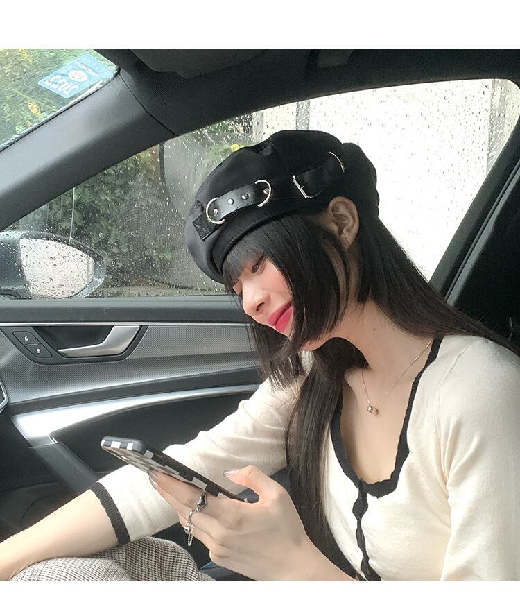 メタルレザーバックルサマー薄手ブラックスタンダードスプリングオータム レトロ 帽子 春物 夏物 秋物 ベレット ヘアアクセサリー ブラック・アイド・ピーズ70350673776