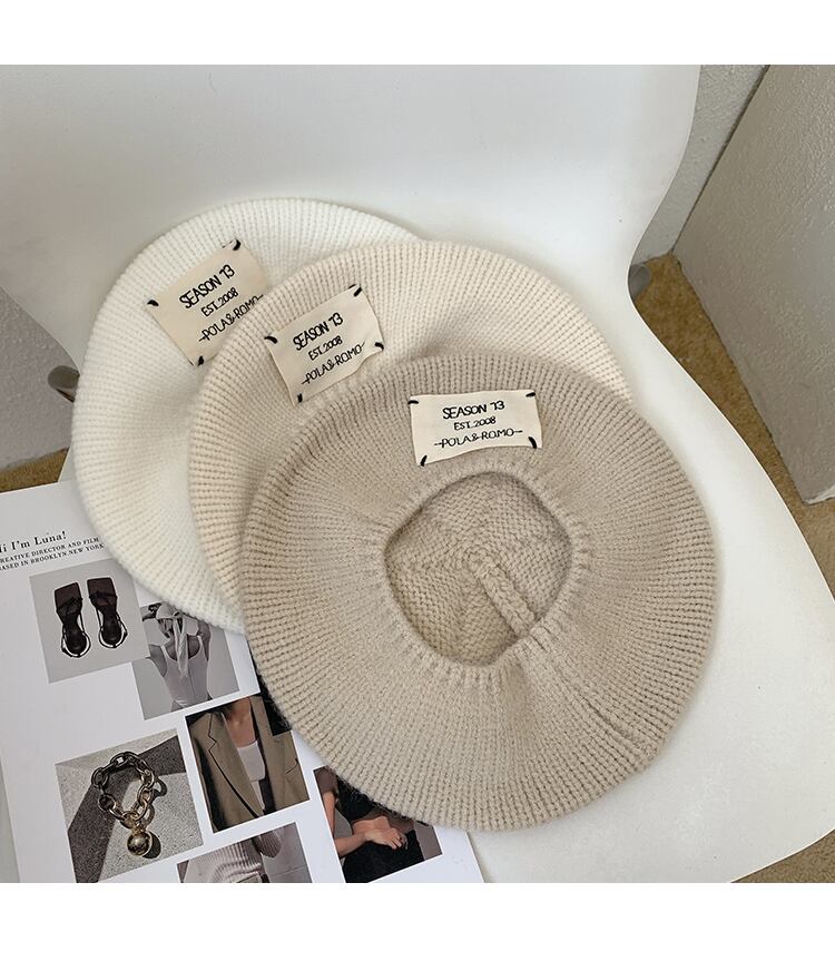 スプリングオータムウールニット 帽子 春物 秋物 ベレット ヘアアクセサリー ブラック・アイド・ピーズ57433609156